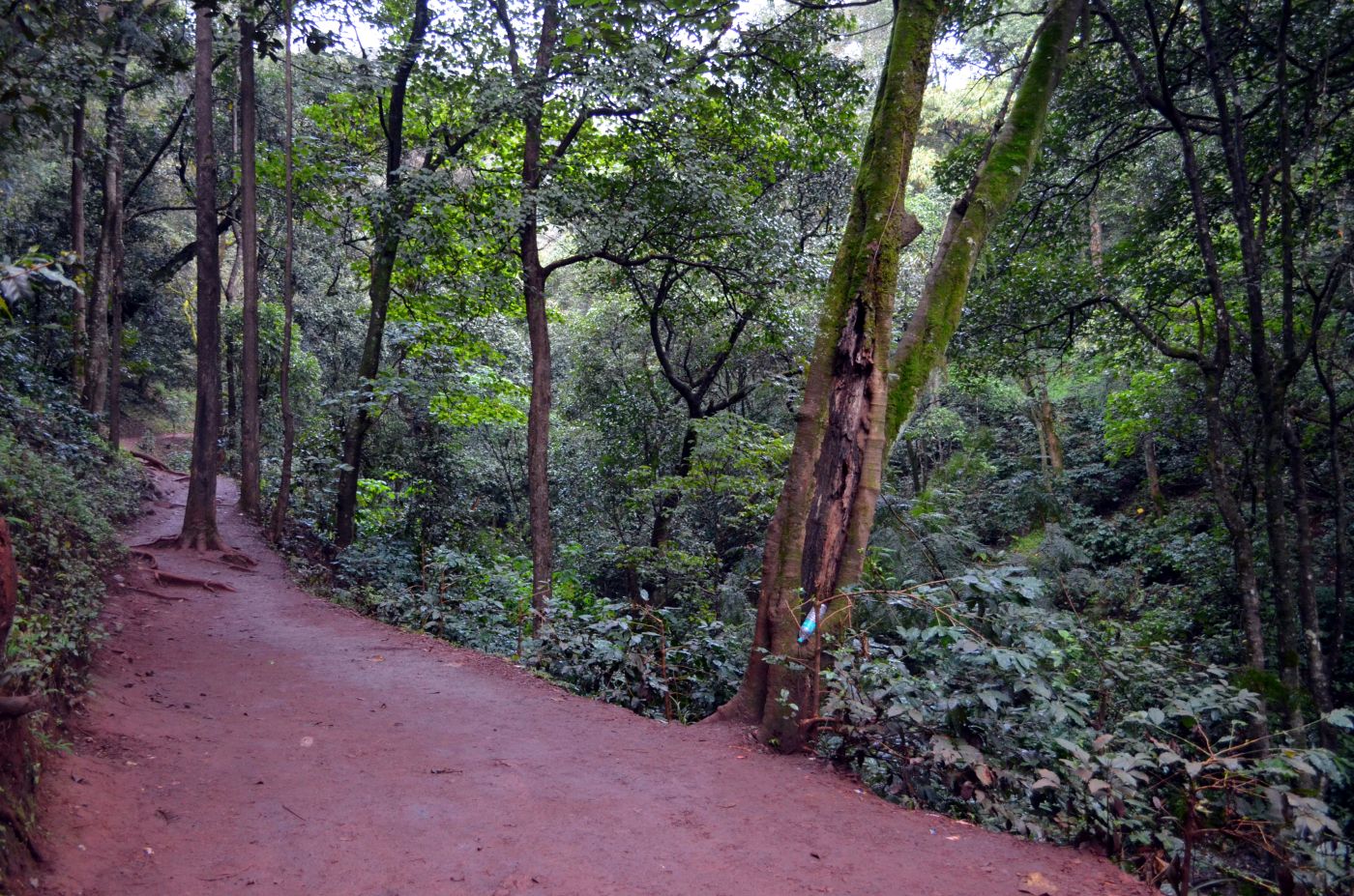 The jeep dropped us off at the edge of a coffee plantation. From there, we began a 1-kilometer hike through the forest, eventually crossing a bridge over the flowing waters of the waterfall. This part of the hike was relatively flat, lasting around 15-20 minutes, and was easily manageable for both children and elderly individuals.