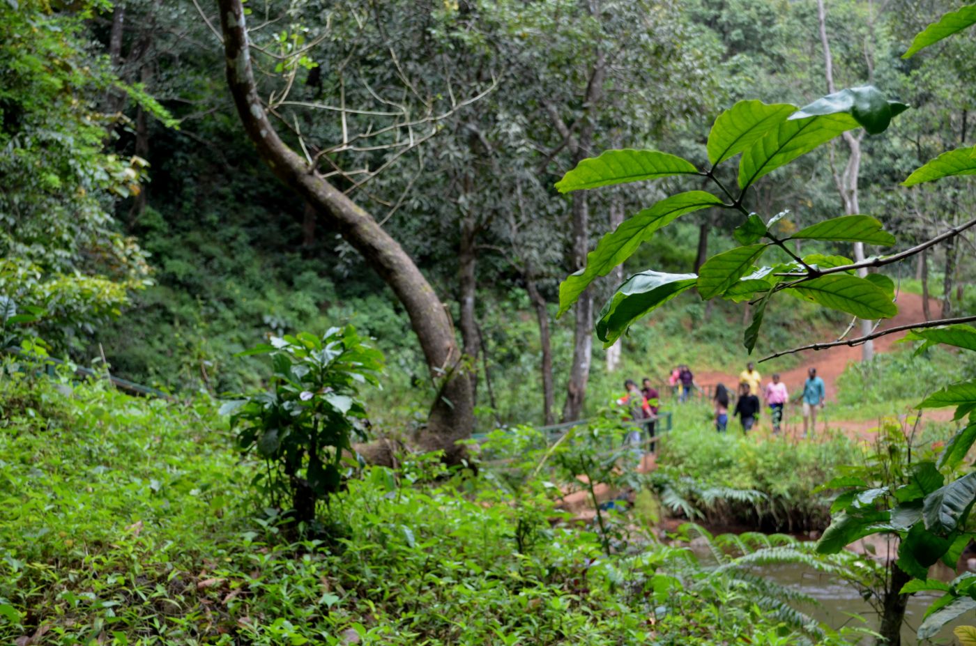 The trek covers a distance of 3 kilometers, with the first 1.5 kilometers being a relatively easy walk on flat terrain through the forest. The challenge arises in the latter part of the hike, which becomes steep. At the 1.5-kilometer mark, you'll encounter a small waterfall named Shanthi Falls, which you'll need to cross. The path near the waterfall is narrow and slippery. Initially, the trail is wide, but it gradually narrows down. It can be somewhat risky when hiking with older adults and children. It is advisable to avoid non-grip shoes.