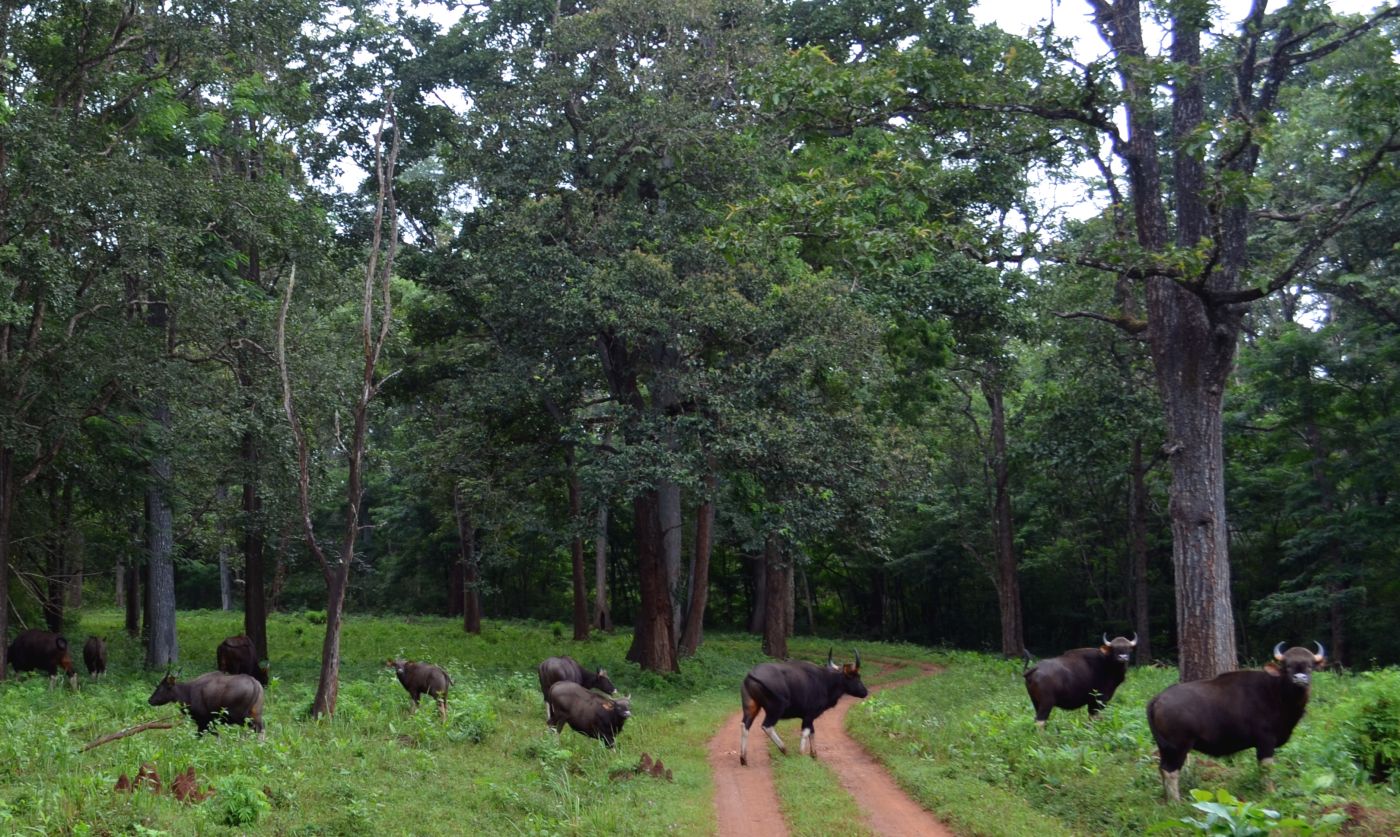 Bhadra Wildlife Sanctuary spans 500 square kilometers across two districts of Karnataka: Chikmagalur and Shimoga. This sanctuary is enveloped by the lush greenery of the Western Ghats and is characterized by dense tropical forests and sprawling grasslands. Our jeep driver informed us that within this vast 500 square kilometer expanse, approximately 40 tigers roam. During our safari, we were fortunate to spot various wildlife, including deer, sambar deer, barking deer, peacocks, peahens, and bison.